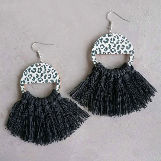 Tassel Detail Leopard Drop Earrings