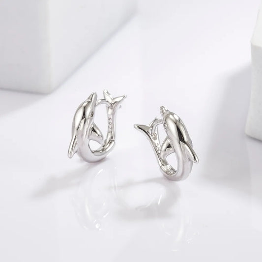 925 Sterling Silver Zircon Dolphin Earrings