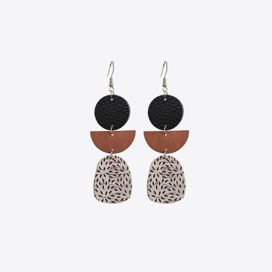 Leather & Wood Drop Earrings