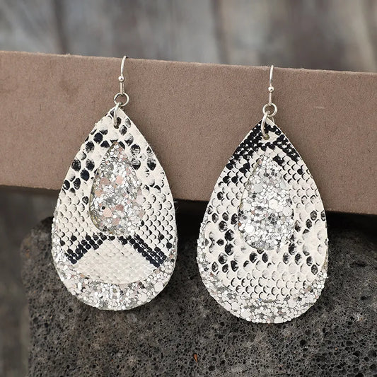 PU Leather Sequin Teardrop Earrings