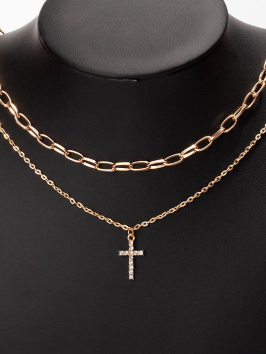 Double Layered Inlaid Zircon Cross Pendant NecklaceRegular price $9.00 USDRegular priceUnit price per-