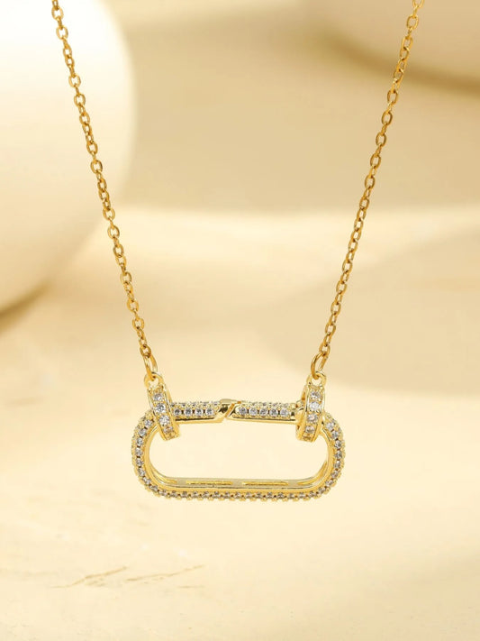 Stainless Steel Zircon Rectangle Pendant Necklace