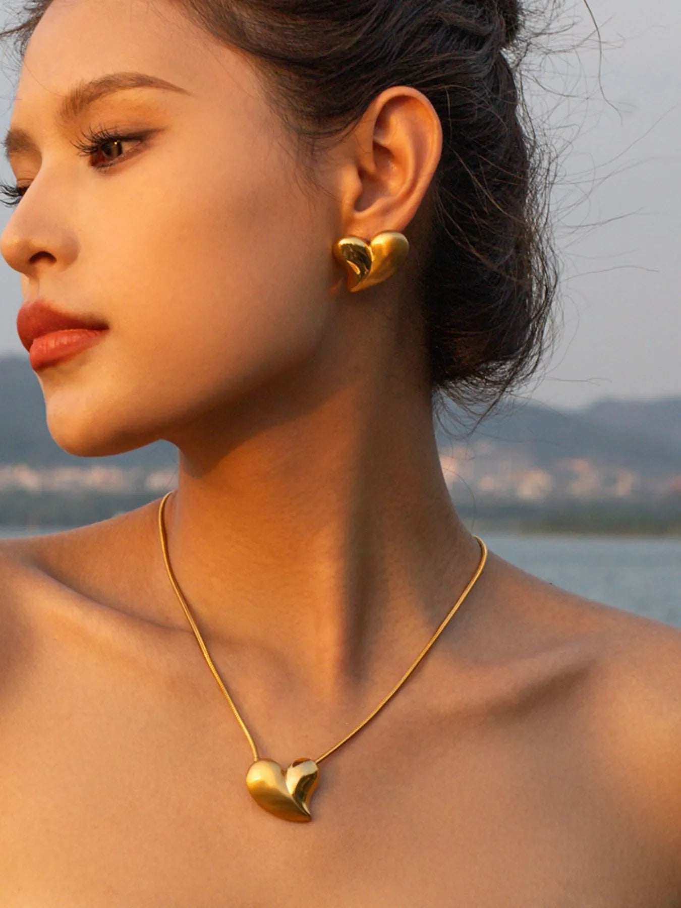 18K Gold-Plated Heart Necklace and Earrings Jewelry Set