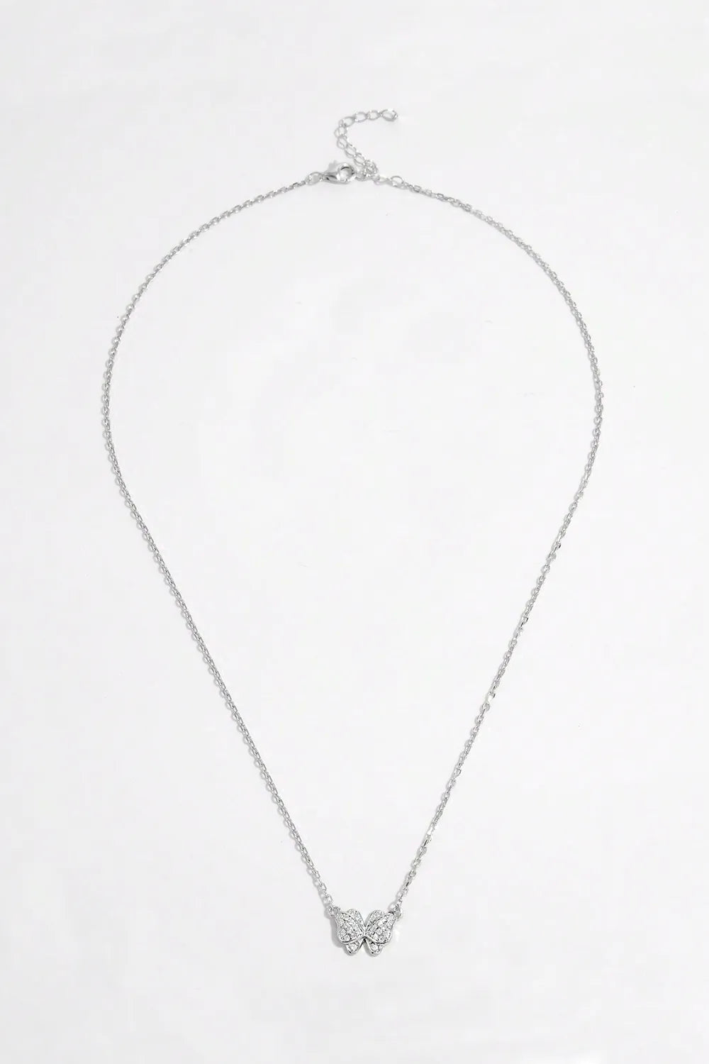 925 Sterling Silver Zircon Butterfly Pendant Necklace