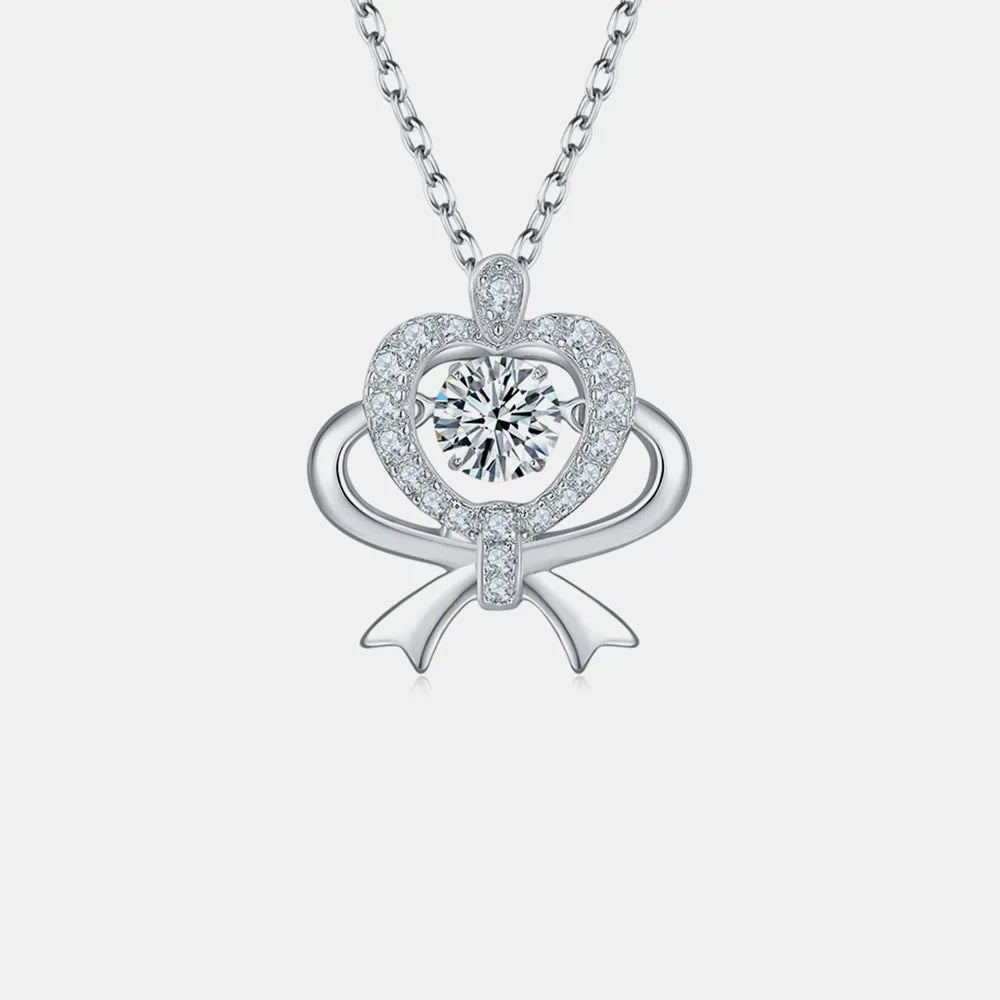 Moissanite 925 Sterling Silver Bow & Heart Necklace