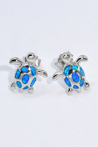Opal Turtle Platinum-Plated Stud Earrings
