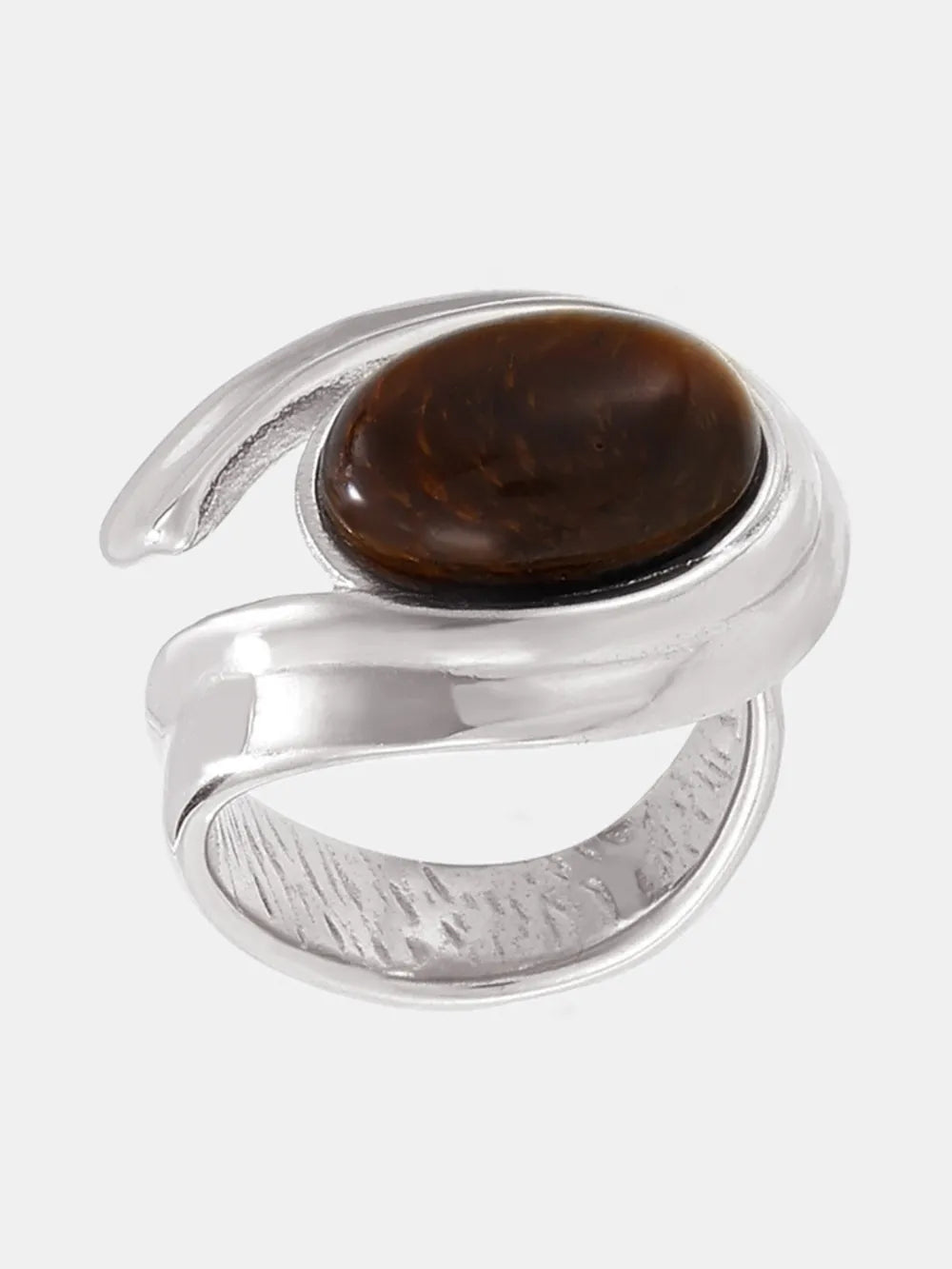 Stainless Steel Tigerite Ring and C-Hoop Earrings Set